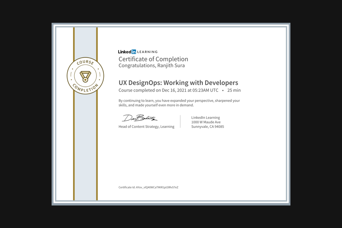 Ranjith was one of the key persons for User interface designing, development and infographics etc., and always came up with something unique. He always had an eye for detailing, colour and typography when I worked with him on proposal graphics, wireframes, POCs and project assignments. He had shown excellent proficiency in UI/UX design aspects, and in fact he had been a key contributor on multiple assignments we worked upon. I saw him as a very dedicated, hardworking and disciplined person. Always effectively takes up challenges and responsibilities. I wish him all luck in his future endeavour.